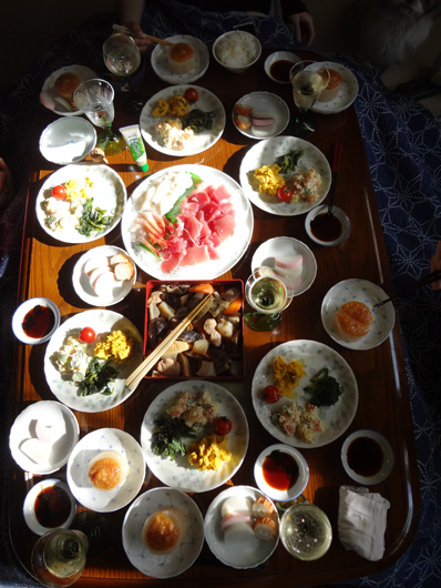 こちらは今年初めての朝食(シャンパン付き)。実家にて。