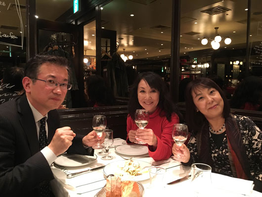 終了後には同級生の浩子さん(右)、後輩の及川さん(左)と会食