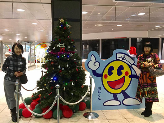 右から順に、亜由子さん、川丸くん(川崎マリエンのゆるキャラ)、私。