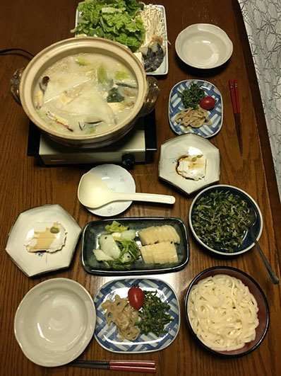 母のごはん。野菜も母が家庭菜園で作りました。尊敬。 |