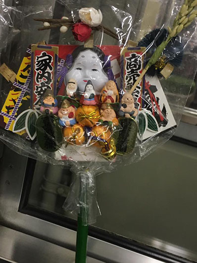 書斎のデスク上に置くための一番小さな七福神の熊手を拝領。