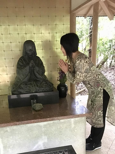 にある稚児大師像にお参りする私 |