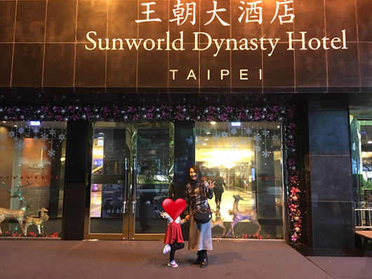 台北市内のホテル前にて孫娘(3歳9か月)と