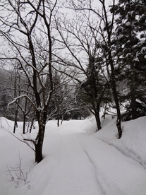 積雪以外には何も見えません (右)たまにイノシシと逢う散歩道 |