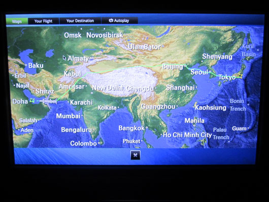 羽田発のカタール航空機で一路ドーハへ。本来ならばエアインディアに乗るところだが、あいにく金曜日は便がなかったのだ。それで、少し遠回りになるがカタール航空を選んだ。