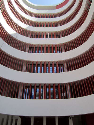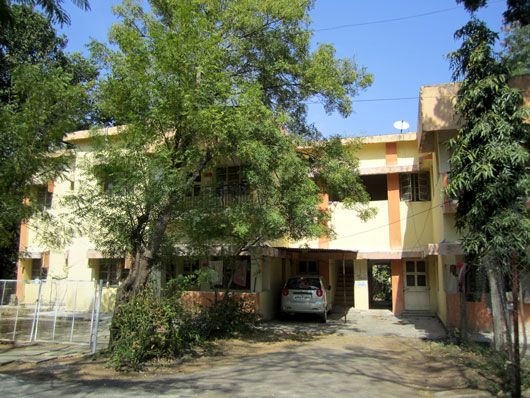 IITH(インド工科大学ハイデラバード校)に到着して6日。ようやく周囲の様子が少しわかってきた。ここはOrdinance Factory(兵器工場)のあるところで、IITHはもとからここにあった古い建物(かつて学校だったところ)に間借りをしている状況のようだ。道理で小学校みたいな建物だと思った。