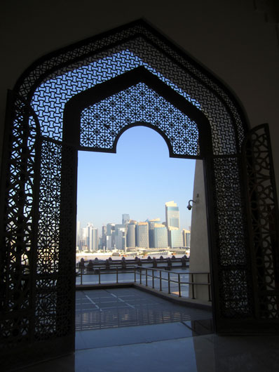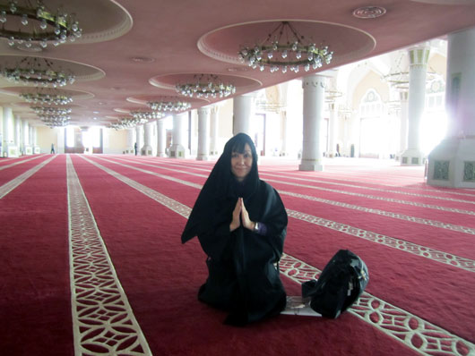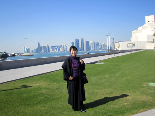 ドーハ市内最大のモスクを見学。頭から全身をすっぽり覆うことのできるコートが大活躍