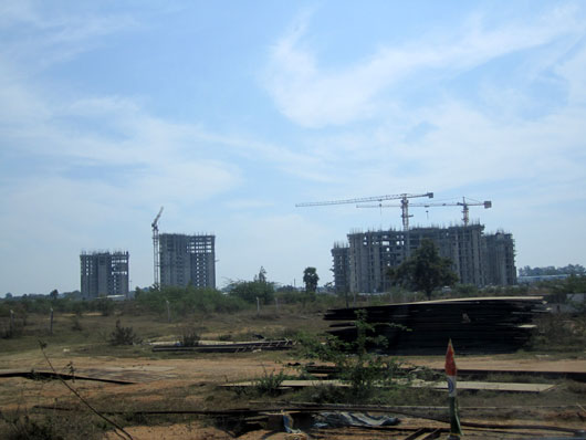 これはホテルの窓から見た風景。市内の至るところが建設ブームに湧いていた