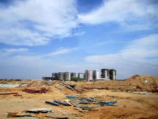 そのあとは化学工業学科の教授らに連れられて新キャンパスの建設現場を見に行ってきた。現在使われているIITHの建物は、実はすべて仮校舎なのだと知った。