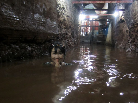 私も旅に出かける前にYoutubeで洞窟内の様子をチェックし、水があまりにも汚いようなので中に入ることを躊躇していたのだが、いざ洞窟を目の前にすると、折角ここまで来たのだから何が何でも行ってみたいという冒険心がムラムラと頭をもたげてきて、「汚いからやめろ」と自制する気持ちが急速に萎えてしまった(笑)。
