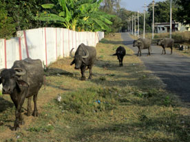 外を歩いていたバッファローの皆さんです
