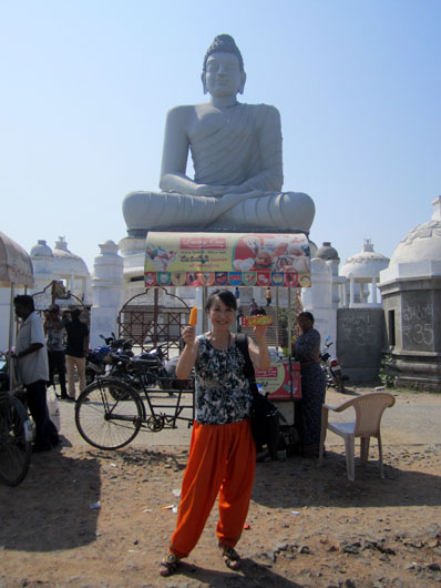 数年前に建立したばかりの真新しいアマラヴァティ大仏。