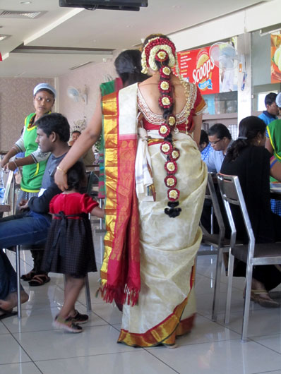 インドは今が結婚シーズン。花嫁仕様の紅白の髪飾り(写真参照)