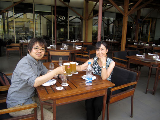 モール内のカフェっぽいレストランで乾杯♪(左は「ヒロ」こと池上洋行さん)