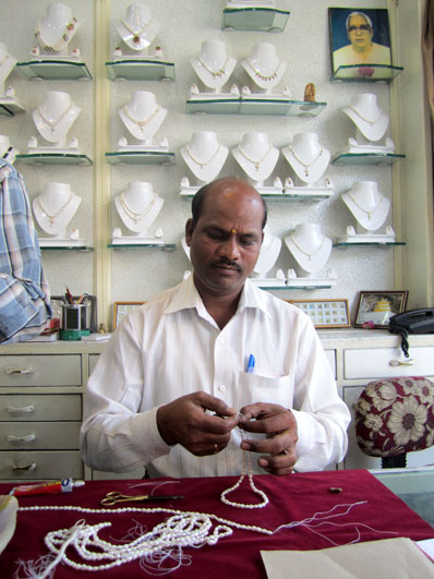 パール・バザールの真珠屋の職人さん。