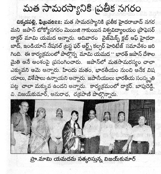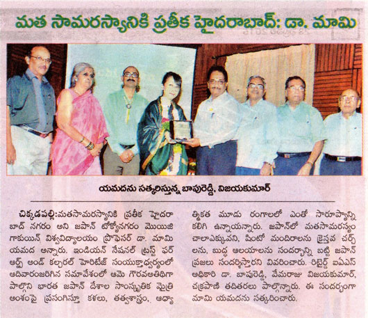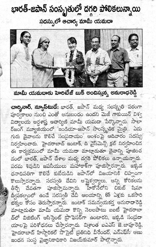 今朝の新聞には一斉に昨日の講演会に関する記事が載った。テルグ語の新聞が4紙。どれも好意的な記事で、実にありがたいと思う。これらを読んだハイデラバードの人たちが少しでも日本文化に関心を持ってくだされば本望である。