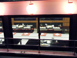 ところで、あとで写真(右下)を見たら、この船って全席掘り炬燵だったんですよね。知っていたはずなのに、なぜか私だけ正座しています(笑)。