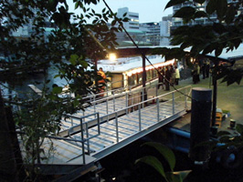 船着き場の風景。定時にやって来た船は、既にお食事の用意が万端整っている様子…… |