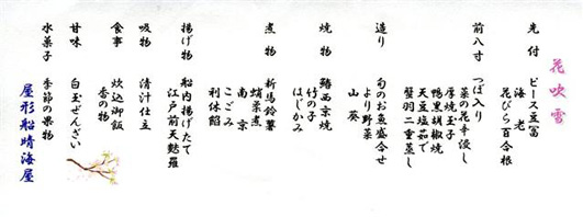 こちらが当日のお食事メニュー。船主の晴海屋さんのウェブサイトはこちらからご覧になれます♪ |