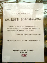 アンデルセンのパンダパンは地震の影響で生産中止とのこと |