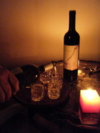 茶道家の佃一可さんのお稽古場にて、庭の桜を愛でつつカウラ産ワイン“Sakura”で一献