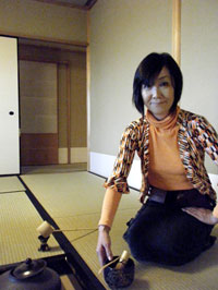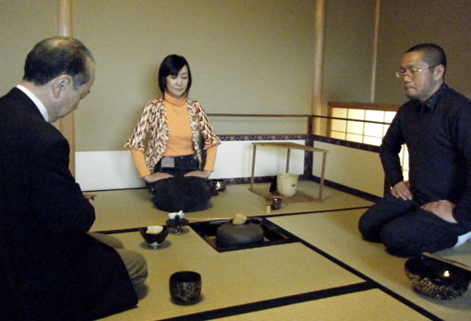 左から半東役の林さん、東役の私、正客役の鈴木さん(御指導:荒井宗羅先生)
