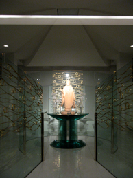「レクイエム」という選曲だけでも迫力満点なのですが、約50人のオーケストラのまわりにはたくさんの仏像がずらり建ち並び、特に、4人のソリスト(ソプラノ、アルト、テナー、バス)の後方には、孔雀明王や弘法大師の像、それに巨大な蓮の花のオブジェが鎮座ましまして、至るところが黄金色。普通のコンサートホールでは決して味わえない不思議な迫力に溢れていました。