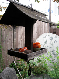 父の三回忌法要のあとでお坊さんや親戚と一緒に行った料亭の庭。小鳥達の