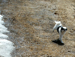 冷たさもどこ吹く風や雪解けの 水と戯(たわ)むる尾も白き犬