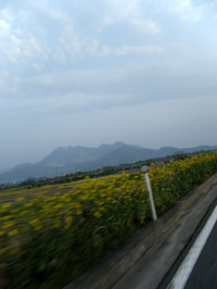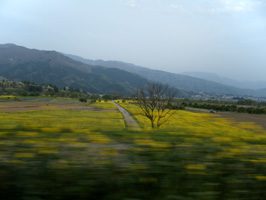 山小屋に近づくにしたがって、菜の花畑が広がり始めました(車窓からの風景)
