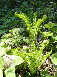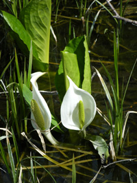 山小屋の池では水芭蕉が満開。“こごみ”も食べ頃(笑)
