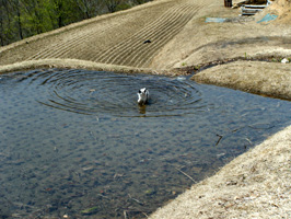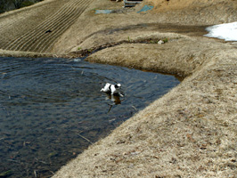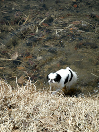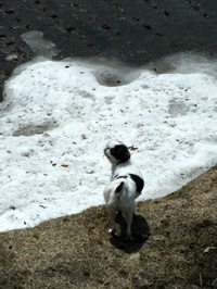 (※飼い犬の雌狆が雪解けの水に飛び込む姿を見て、平成22年の端午の節句に詠める) |