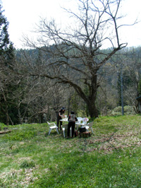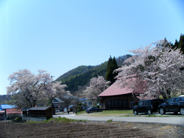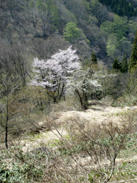 下の村では、桜がちょうど満開でした。東京にくらべて1か月以上遅い開花ですネ