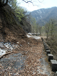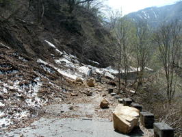 この道路は雪崩による土砂崩れのため、いまだに不通(今年は雪が多かったみたい)