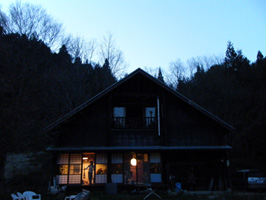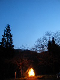 温泉から出て山小屋に戻ったところで、ちょうど日が暮れました。今夜はキャンプファイアー! |