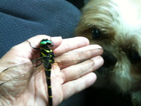 しげしげとオニヤンマを観察中