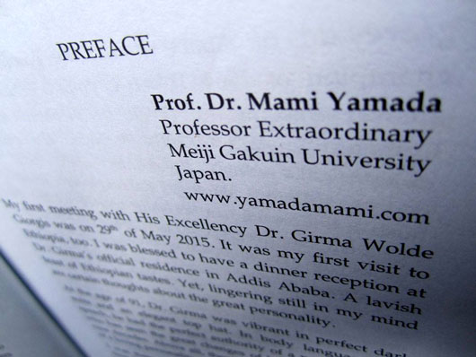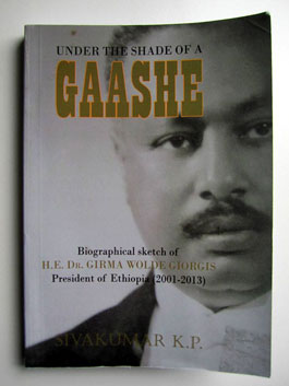 封筒の中身は、インド人ジャーナリストのシバクマール氏が出版なさった初めてのご本。エチオピア前大統領の伝記で、タイトルは“Under the Shade of a Gaashe”といいます。