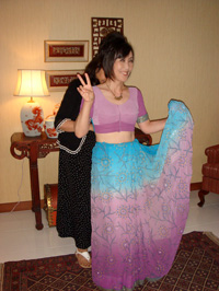 ……というわけで、ラヌさんにサリーの着付けを手伝ってもらいました。 |