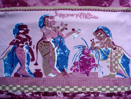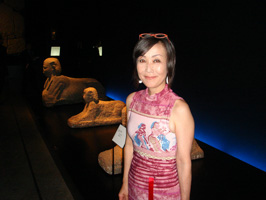 海のエジプト展オープニングにて(右は当日着用ドレスの柄の拡大図です)