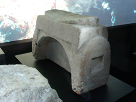 (左)当時の石の枕。クレオパトラもこんな枕で眠ったのかな? (右)幻の香り“キフィ”