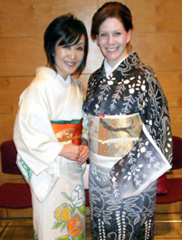 (左写真)新年会にて、浅草で活躍するオーストラリア人芸者の「紗幸さん」とツーショット