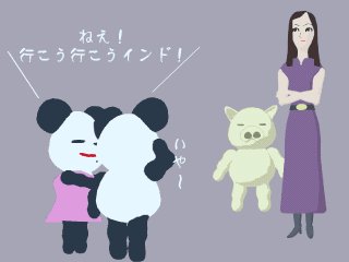 | ※当作品は、「週刊マミ自身〜ロシヤの殺し屋、おそろしや」のイメージをもとに、友達のアニメーター金之助さんが制作してくださったオリジナルGIFアニメです。パンダ♂とパンダ♀の両キャラクターは「Tabasco Room」、マミリンとブースケは「山田真美の世界」にそれぞれ帰属します。アニメの一部または全部を無断で使用することは固くお断りします。 |