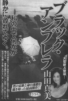 | 『ブラック・アンブレラ』の読後感想文をこちらまでお寄せください。抽選で毎月1名様に、山田真美の世界オリジナルグッズを差し上げます。お寄せいただいた感想文は当ホームページで発表させていただくこともあります。これまでに寄せられた感想はこちらからお読みいただけます。 |