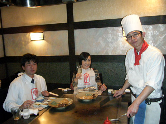 BENIHANA”でナイフやフライ返しが宙を飛ぶ派手なパフォーマンスの鉄板焼きをいただいたことがあるのですが、あのときは、