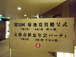 菊池寛賞授賞式からの流れとあって、有名人(筒井康隆先生とか……)が見えていらっしゃったせいか、入り口には大きく「写真撮影&サイン禁止」という意味のお触れ書き。
