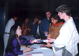 Young and beautiful looking Mami Yamada is a scholar in Indian Mythology. Born and brought up in a small town of Japan, she had a knack for writing from the early age of 9 years. She started contributing to school and other social publications. She now has seven books published to her credit. Her most outstanding publication is 'The Mango Tree' which is about the ancient Indian magic 'The mango Tree'. Her two new Japanese books have been translated into one English book 'Wheel of Destiny' released on 9th of this month. It took her seven years to complete this book. She has a 14 year old daughter Lia and 8 year old son Nasa conceived in Houston, Texas. Both go to the American Embassy School in New Delhi. Her husband Masami is the international famed painter. Mami travels a lot, all by herself, giving lectures, meeting people, attending seminars and doing research for her books. Besides being a writer she is a TV personality in Japan who has hosted more than 100 TV programs. (by Vinod Aggarwal and Reena Mohan)