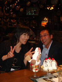 食事も脂っこくてかなりのボリュームがあったのですが、それでもみんな最後の締めは巨大パフェに挑戦、そして完食。……私たちって一体(笑)。