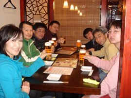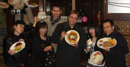 上の写真に写っているホンモノの食べ物と比べて見てネ♪)左から、J嬢、私、Iさん、スティーブ、LiA、唄さん |