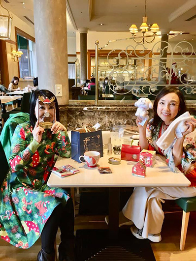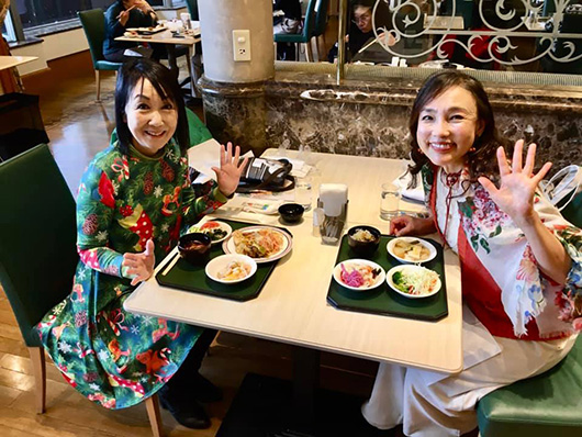 二人クリスマス忘年会を楽しむ岡正子さん(右)と私