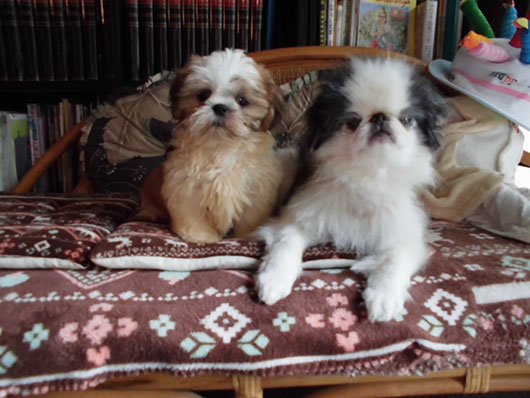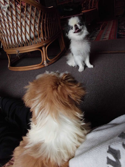パンダは狆の女の子。犬としてはかなりの高齢に当たる12歳9か月で、ブースケが死んだあとは急に静かになってしまった感じでした。クースケが来たことで少しでも元気を取り戻してくれたらと願っています。